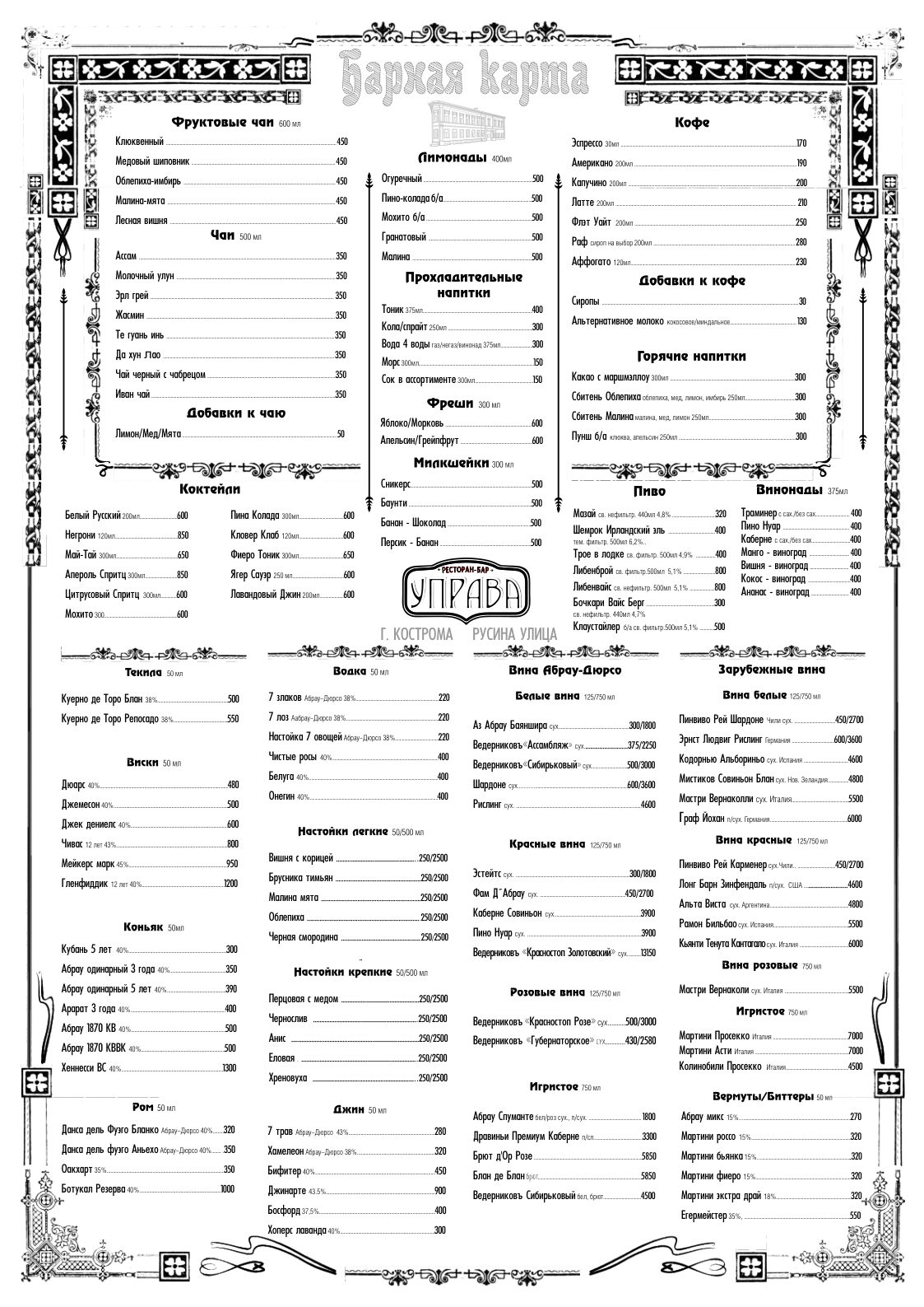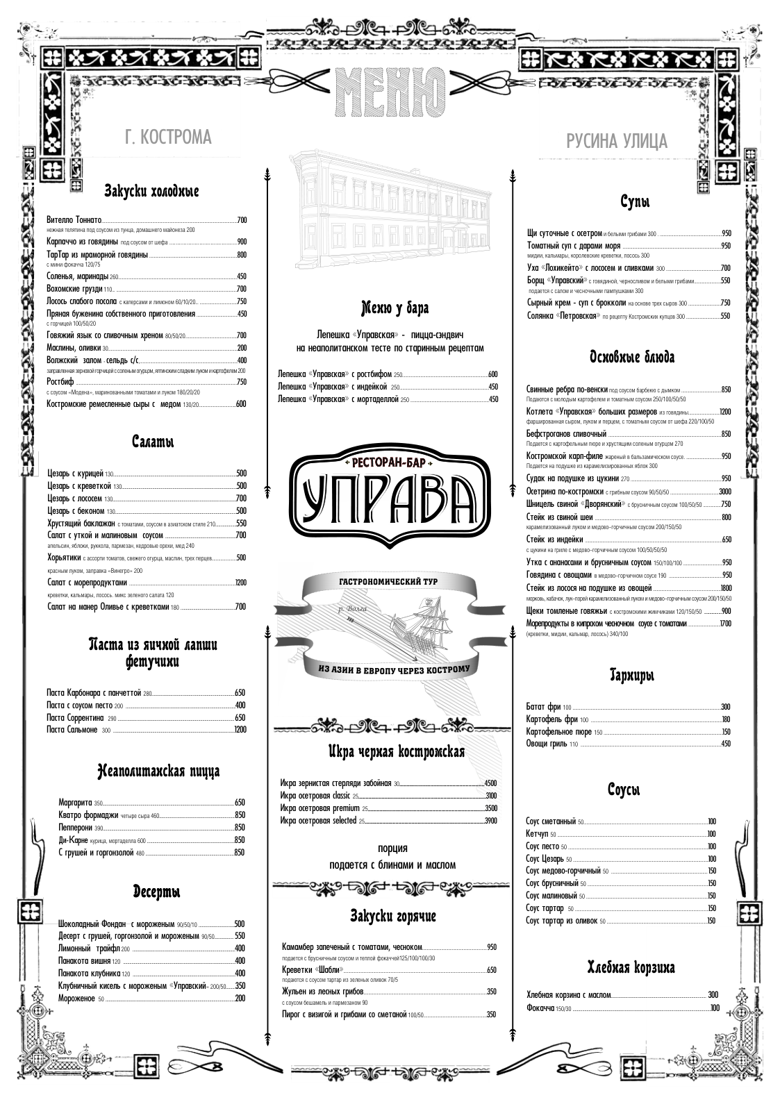 Добро пожаловать в ресторан УПРАВА – место, где традиции встречаются с современностью.